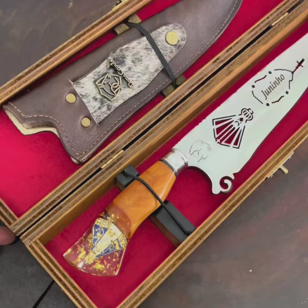 Faca Churrasco Artesanal 10" Nossa Senhora Aparecida + Bainha Grátis
